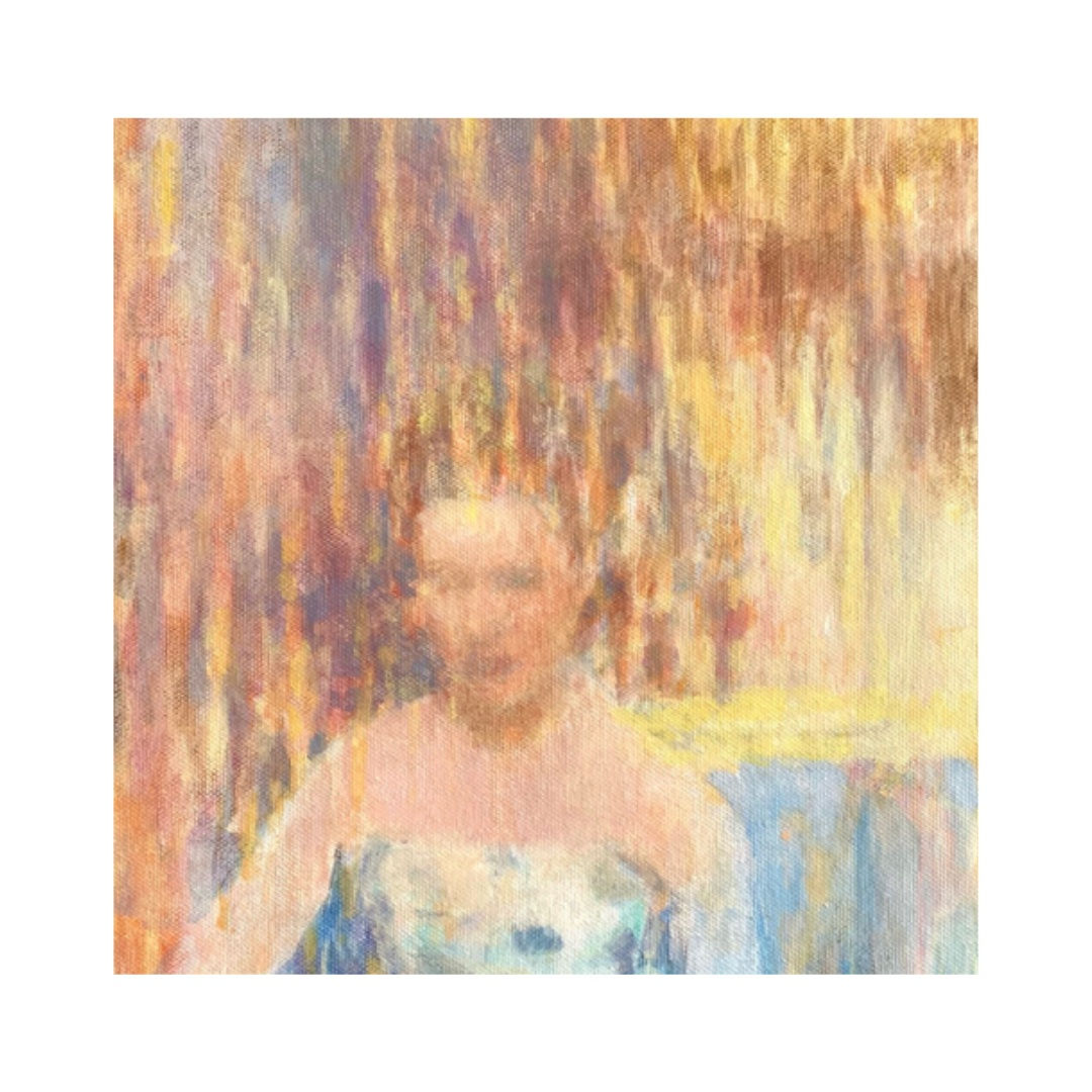 The source material for all the works is photographic, both my own photographs of place, scene and found imagery of people. The initial found photo is distanced from its original format / physical reality by the addition of another image, of another place and time, producing a sort of double exposure. Using multiple images enables the figures in the paintings to transcend the familiar to sit, or stand, within a metaphysical, dreamlike environment. There’s an element of push me-pull you with each of the images as I paint, I like the dynamic this creates. There are definite tropes: women holding cats, sitting under trees, standing by fountains etc. The photos depict individuals but their experience is universal, the old snapshot represents in part what it is to be human. Running all the way though of course is the knowledge that most of the people whose photos I have are no longer with us and, even sadder, the albums have been sold via online auctions rather than becoming treasured keepsakes. I know that the trace of the familiar ‘old photo’ resonates with viewers and I like this connection to memory but my intention is to also make work with a poetic intensity and personal connection which I hope is universal.
