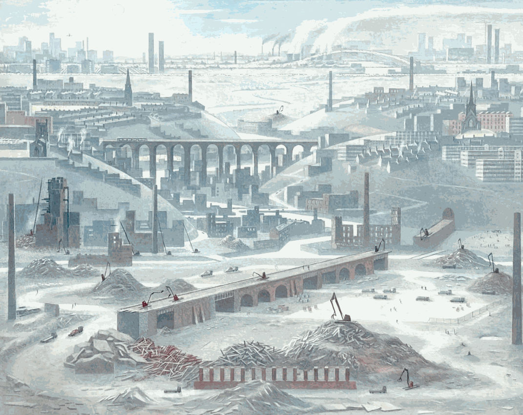 Born in the mid-20th century and trained at the Royal Academy Schools, Helen Clapcott has spent most of her life watching, recording and reinterpreting the architectural and natural landscape of Northern England. It’s Stockport, in particular, that keeps pulling her back.